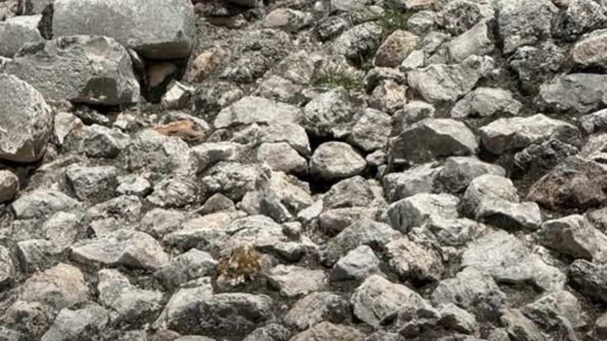 A graça é reparar como o corpo dela “quebra” o contorno: o que parece uma sequência de pedrinhas é, na verdade, cabeça, dorso e cauda se misturando com a textura do terreno.