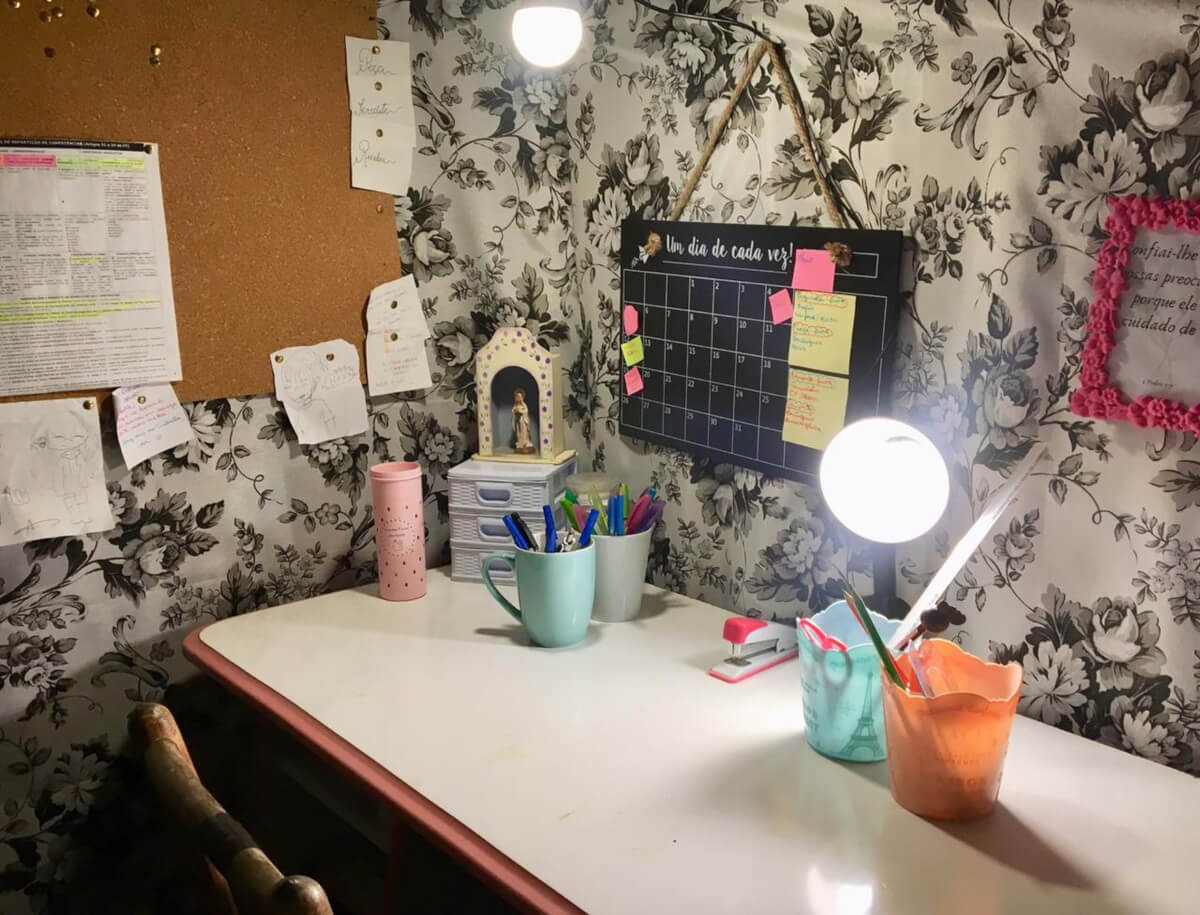 “Por dentro colocamos panos por causa do frio. A mesa branca achamos em um lixo perto de casa. Tudo foi reciclado e o quarto é muito fofinho”, disse a estudante.